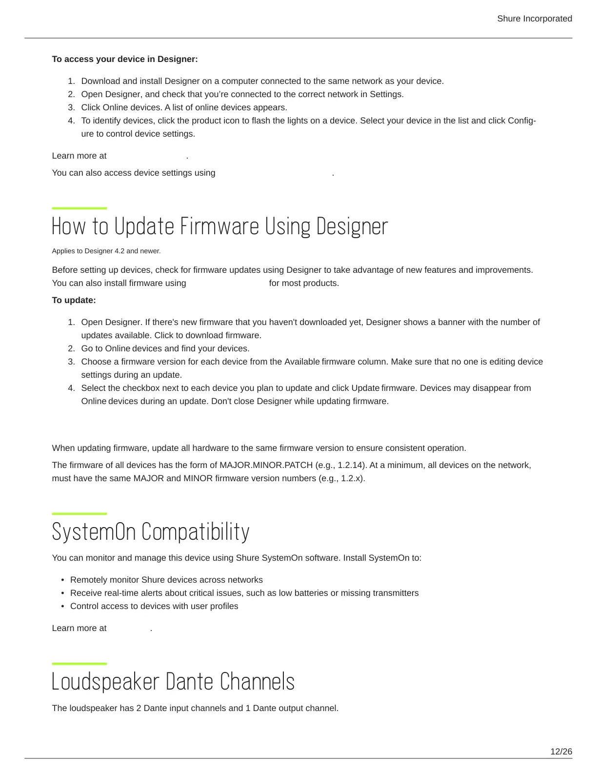 You can monitor and manage this device using Shure SystemOn software. Install SystemOn to: