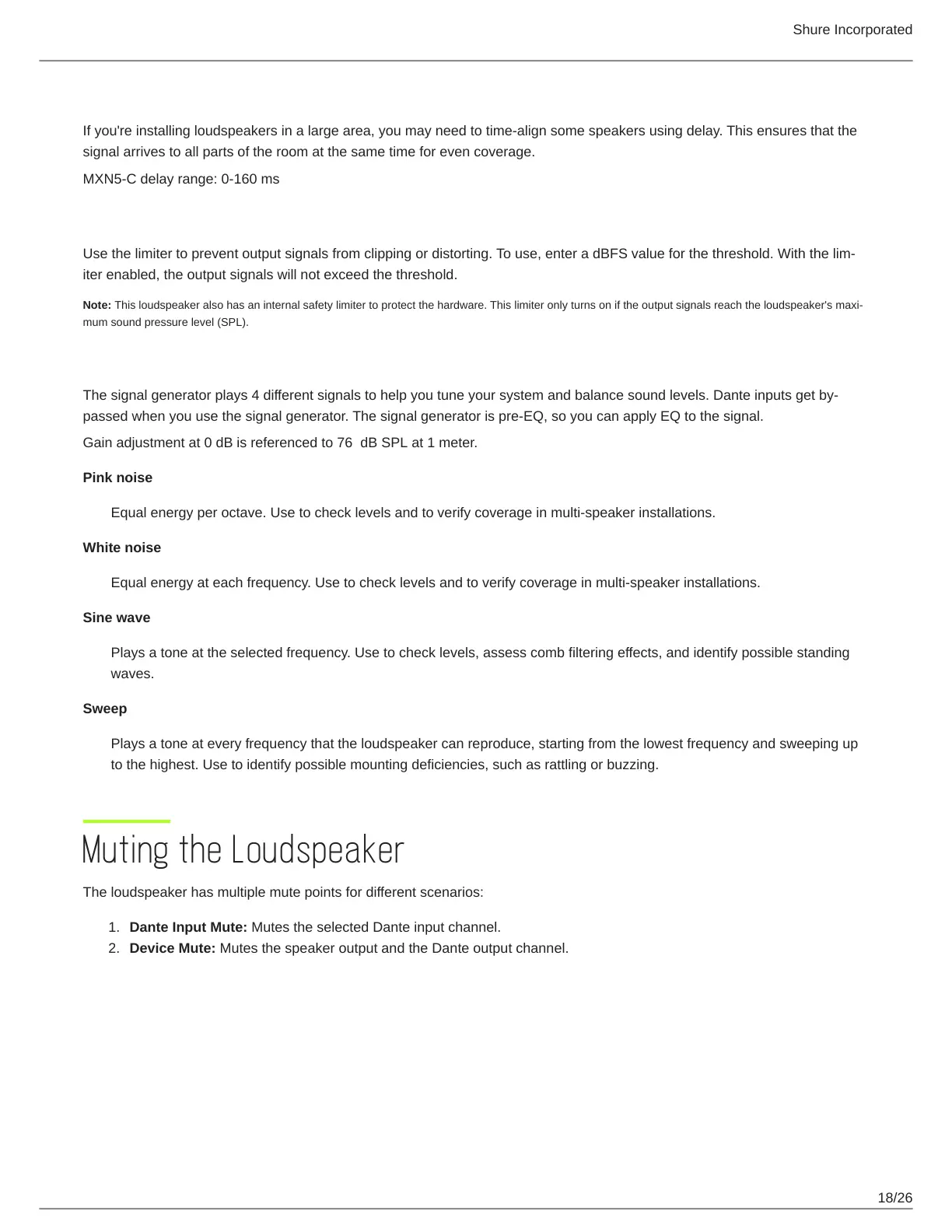 Note: Thisloudspeakeralsohasaninternalsafetylimitertoprotectthehardware.Thislimiteronlyturnsoniftheoutputsignalsreachtheloudspeaker'smaxi-