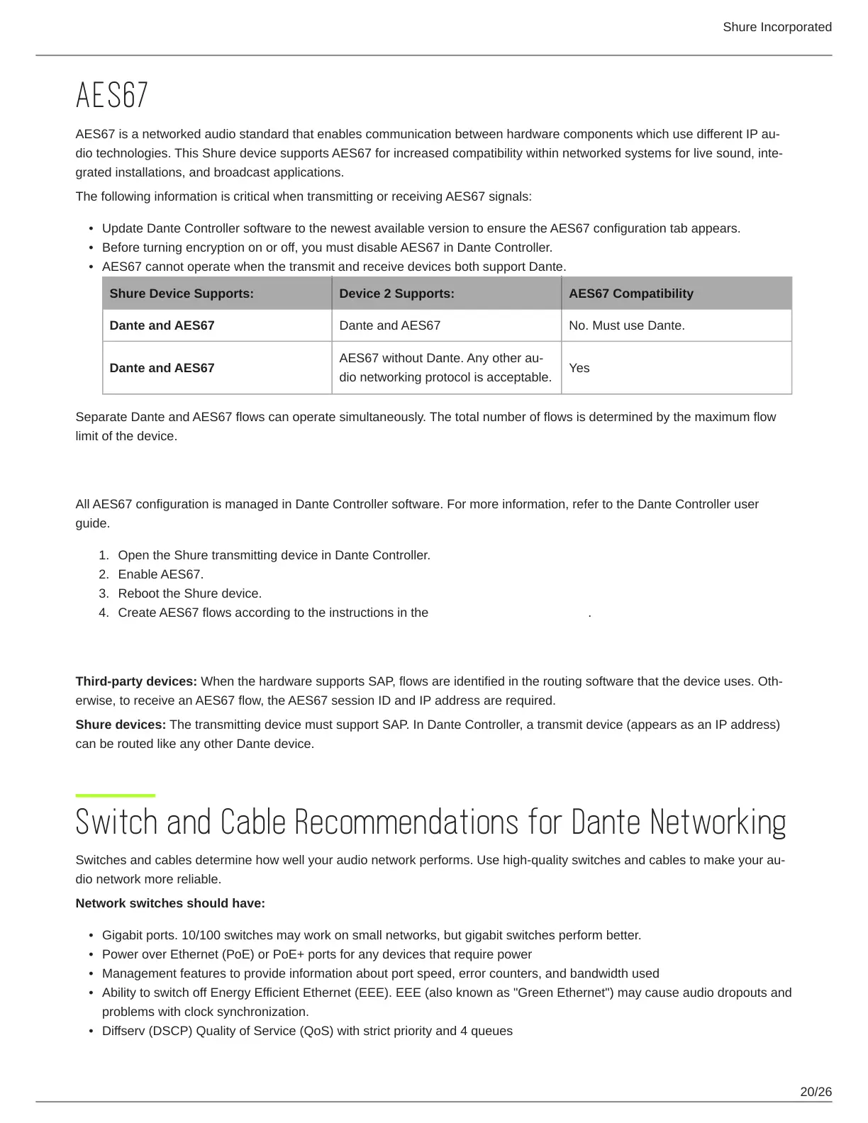 diotechnologies.ThisShuredevicesupportsAES67forincreasedcompatibilitywithinnetworkedsystemsforlivesound,inte-