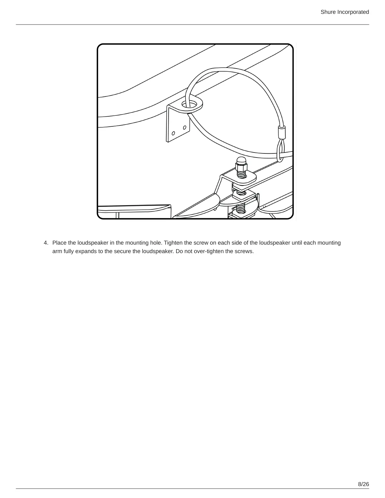 4. Place the loudspeaker in the mounting hole. Tighten the screw on each side of the loudspeaker until each mounting