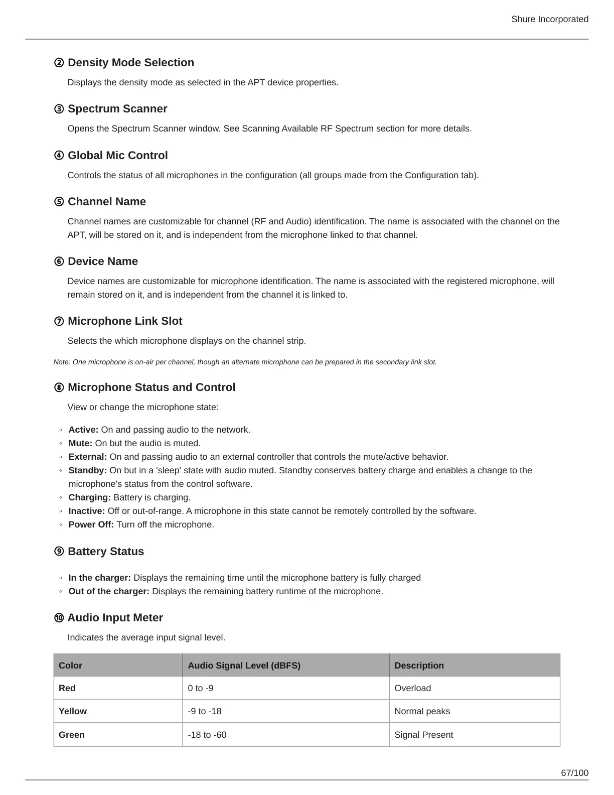 Inactive: Off or out-of-range. A microphone in this state cannot be remotely controlled by the software.