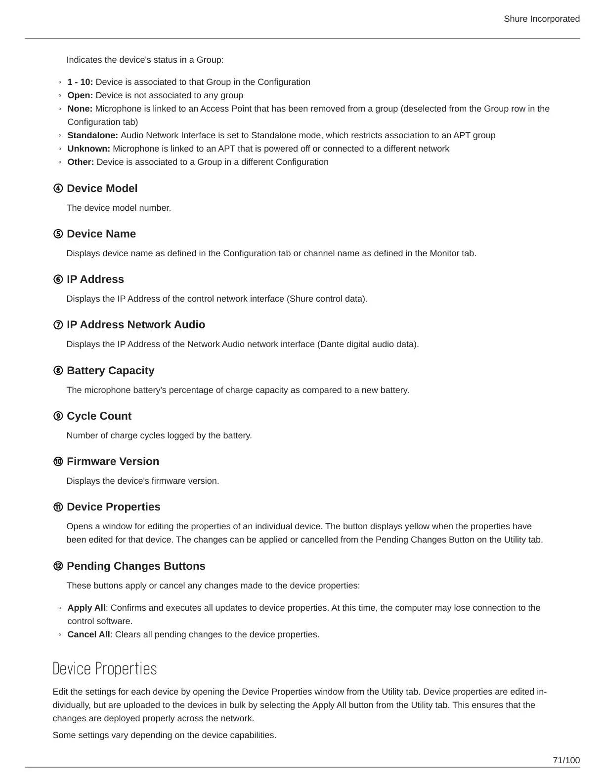 EditthesettingsforeachdevicebyopeningtheDevicePropertieswindowfromtheUtilitytab.Devicepropertiesareeditedin