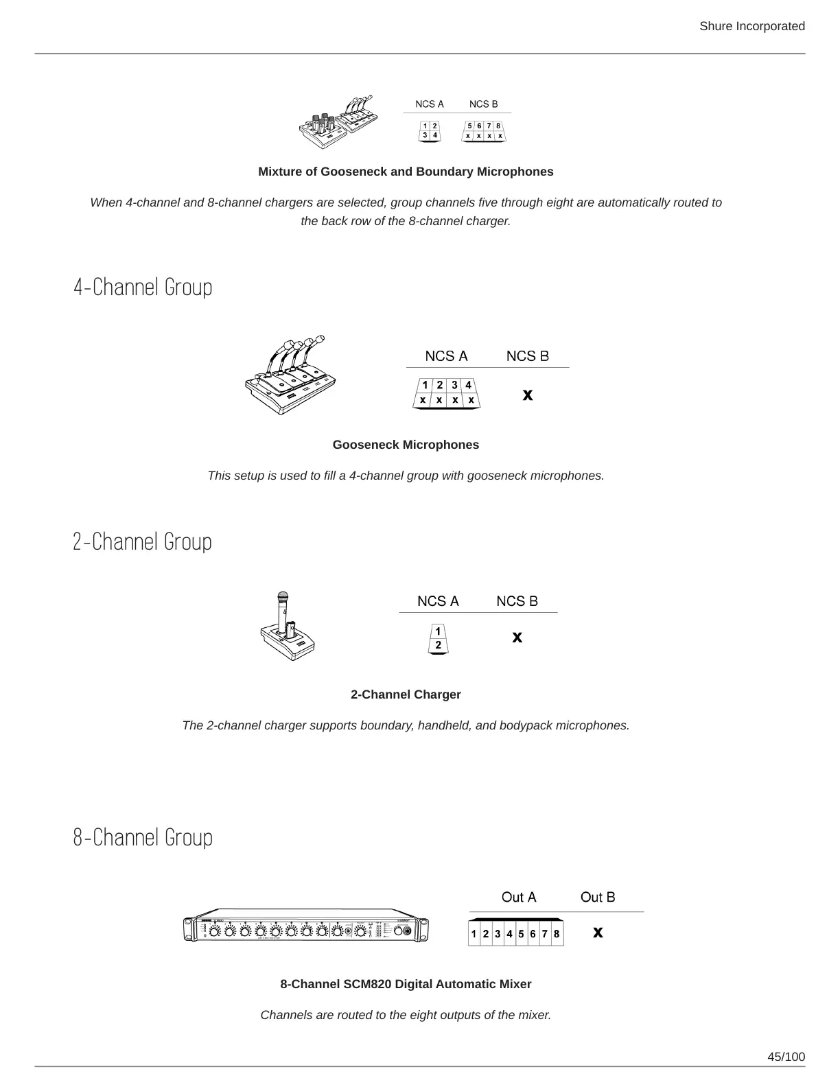When 4-channel and 8-channel chargers are selected, group channels five through eight are automatically routed to