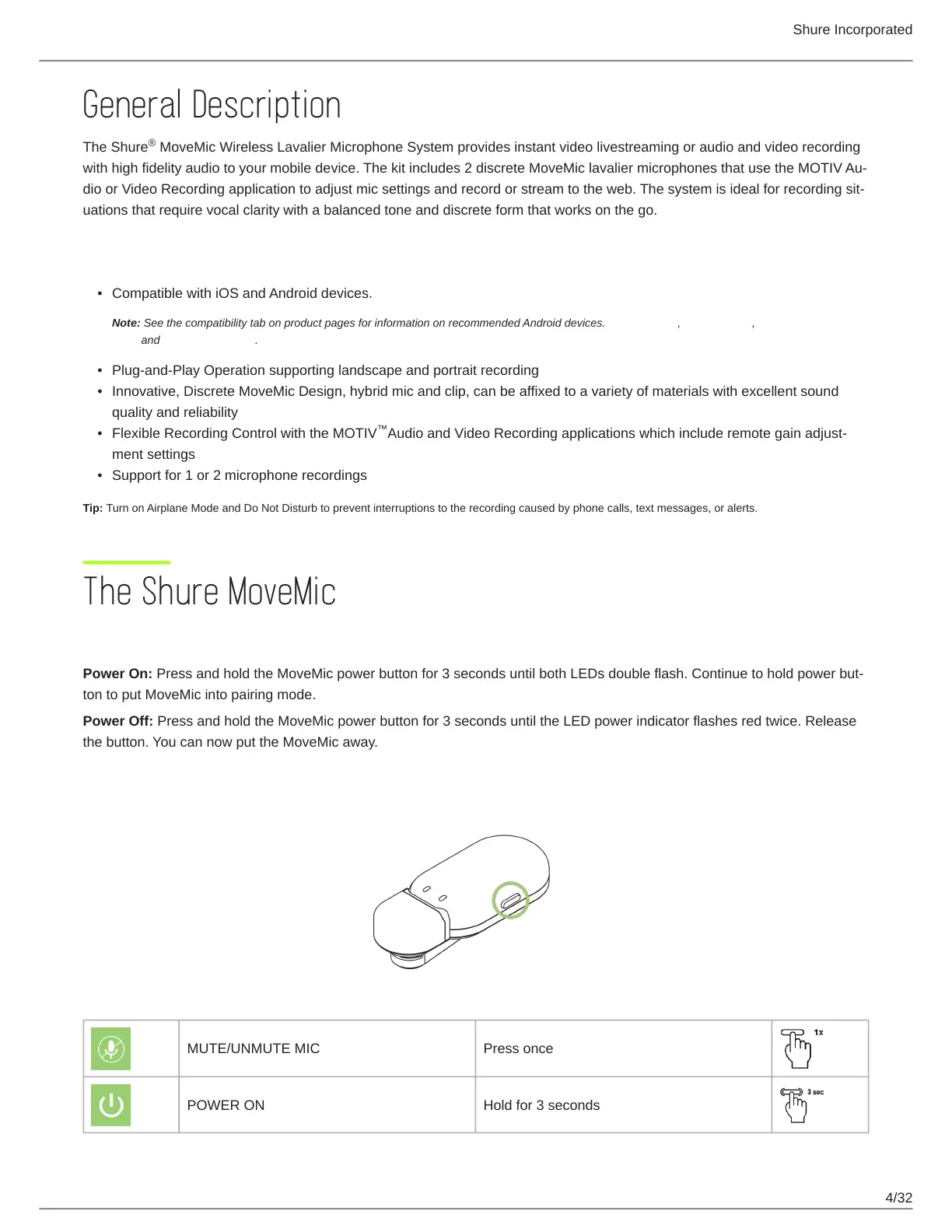 Note: See the compatibility tab on product pages for information on recommended Android devices. MoveMic One, MoveMic Two, MoveMic Two Receiv