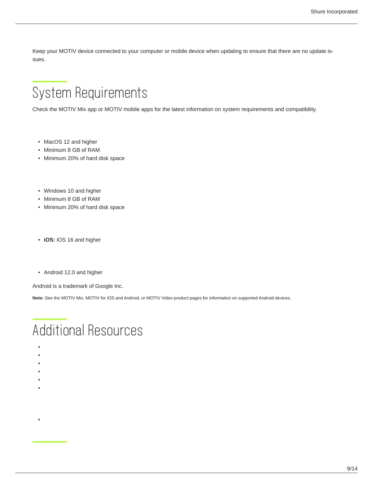 Check the MOTIV Mix app or MOTIV mobile apps for the latest information on system requirements and compatibility.