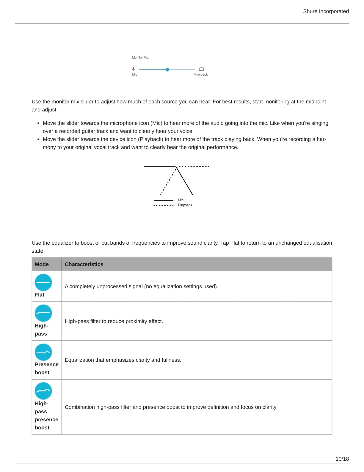 Use the monitor mix slider to adjust how much of each source you can hear. For best results, start monitoring at the midpoint