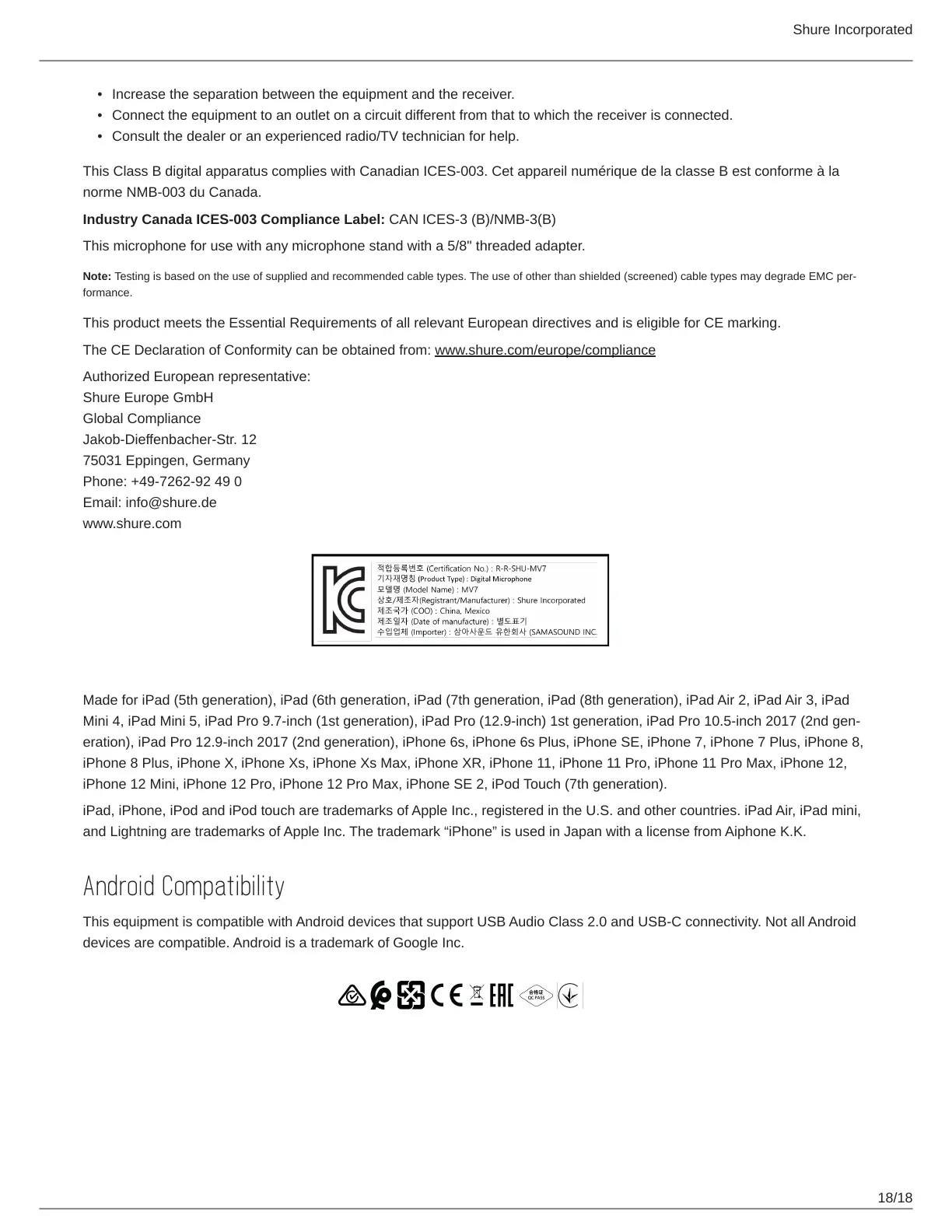 The CE Declaration of Conformity can be obtained from: www.shure.com/europe/compliance