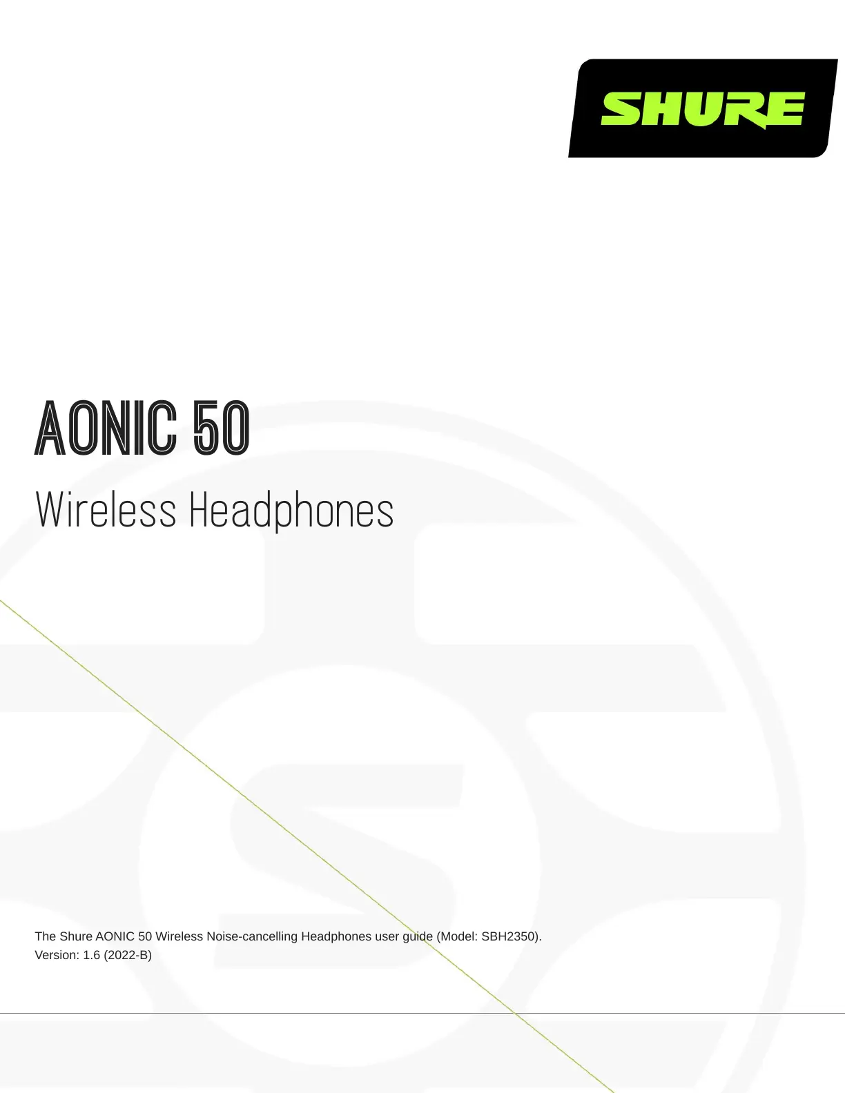 The Shure AONIC 50 Wireless Noise-cancelling Headphones user guide (Model: SBH2350).