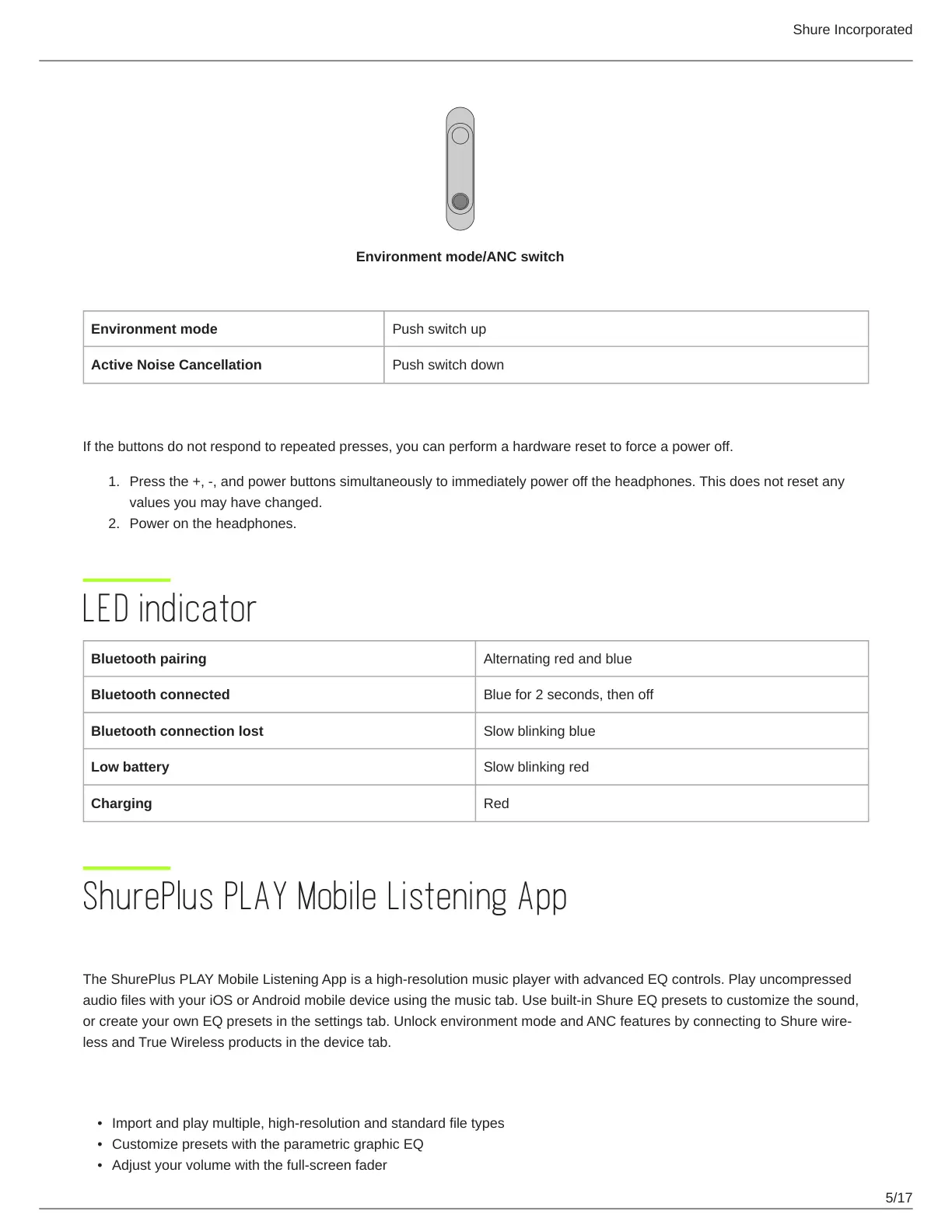orcreateyourownEQpresetsinthesettingstab.UnlockenvironmentmodeandANCfeaturesbyconnectingtoShurewire