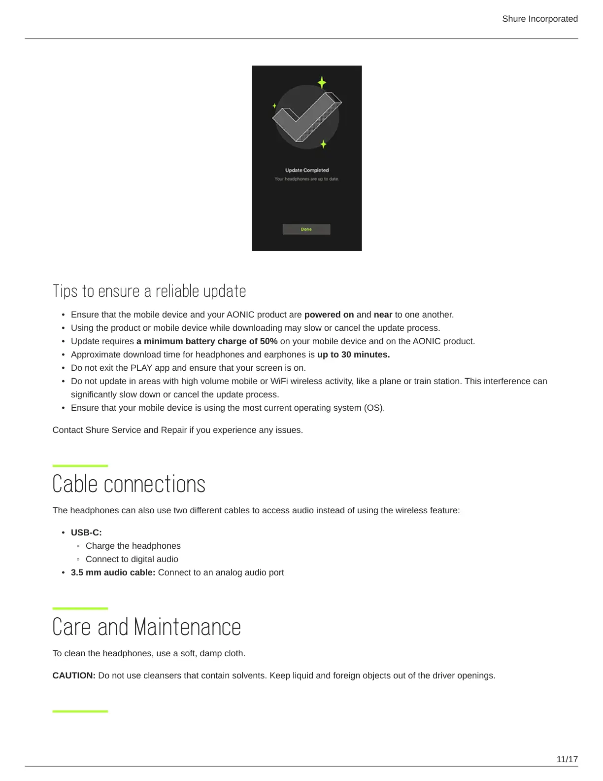Contact Shure Service and Repair if you experience any issues.