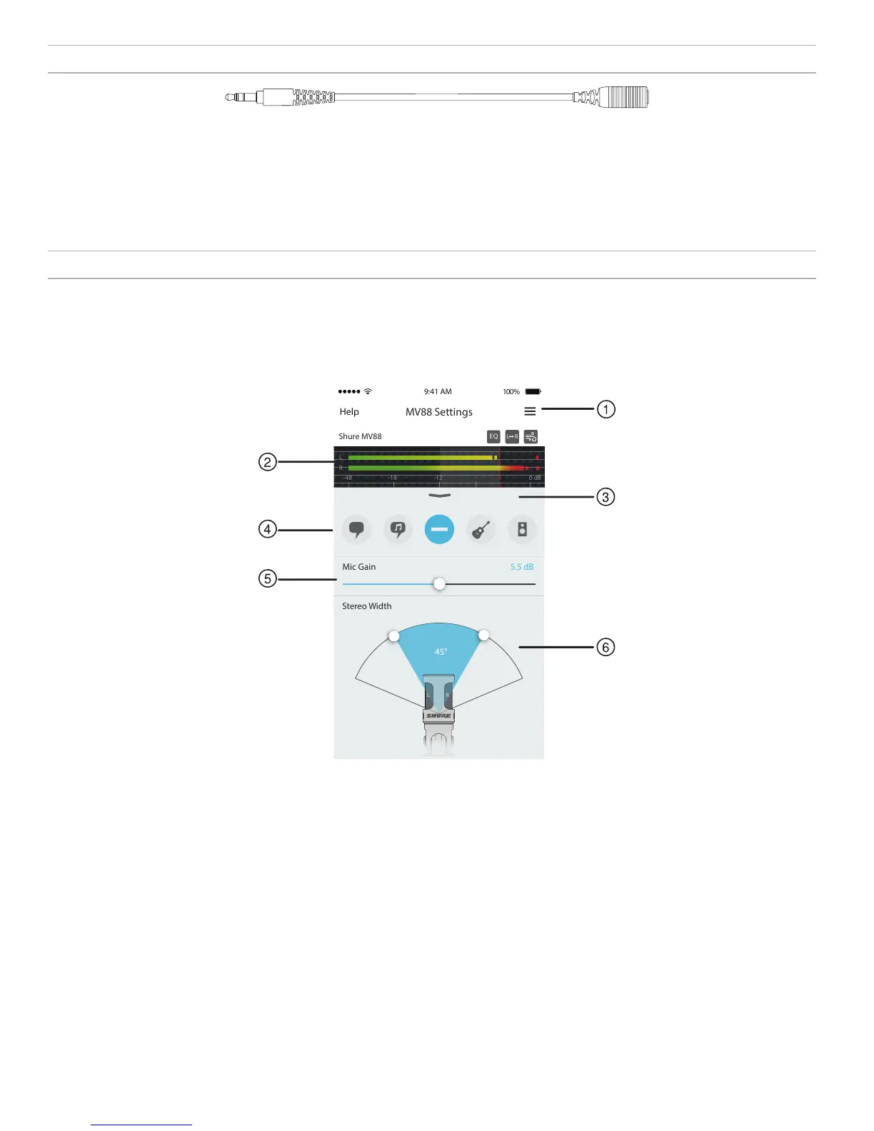 L'app ShurePlus MOTIV controlla le impostazioni del microfono per ottimizzare le prestazioni in condizioni di utilizzo specifiche.