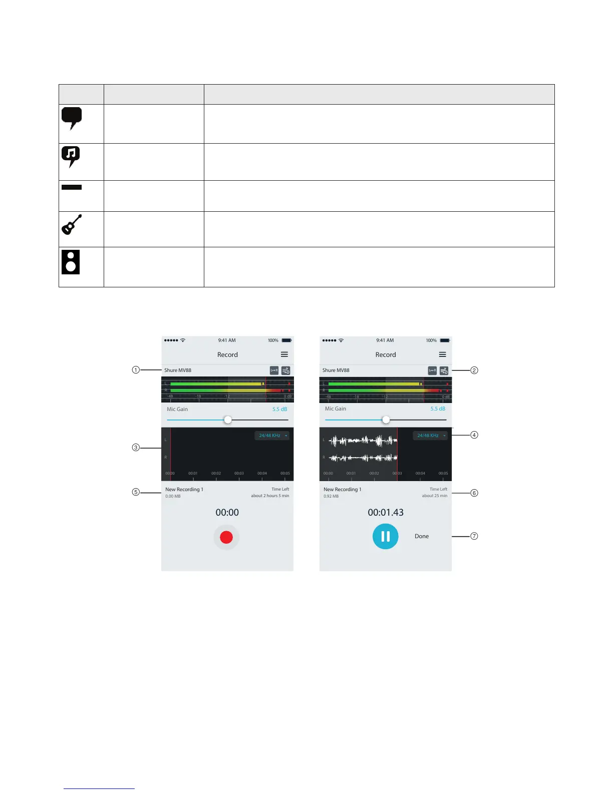 genze di registrazione. Impostate il livello del microfono e scorrete le modalità per trovare l'impostazione con il suono migliore. Quindi, regolate il livello