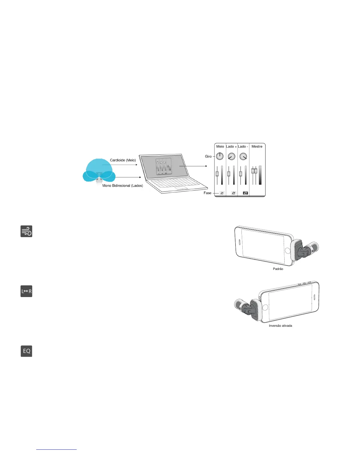 Ao gravar em estéreo, este recurso vira os canais de áudio esquerdo e direito para corresponder