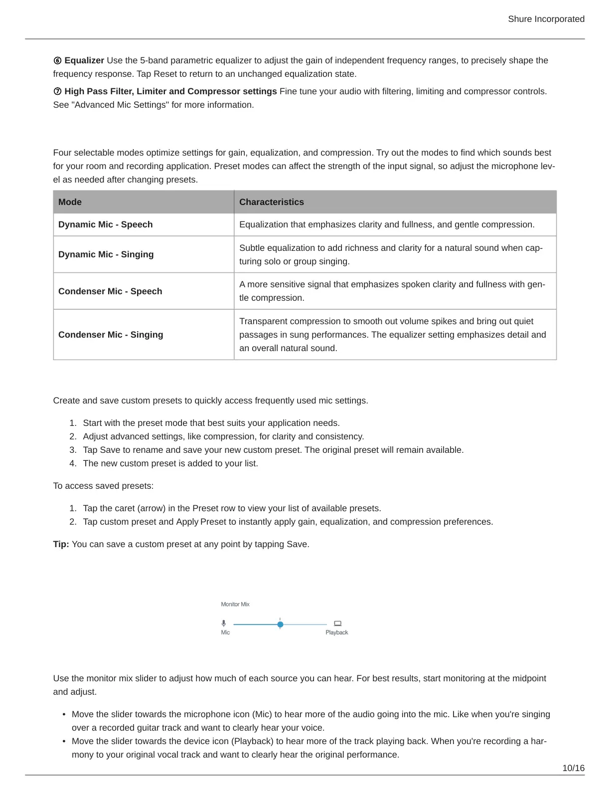 Create and save custom presets to quickly access frequently used mic settings.