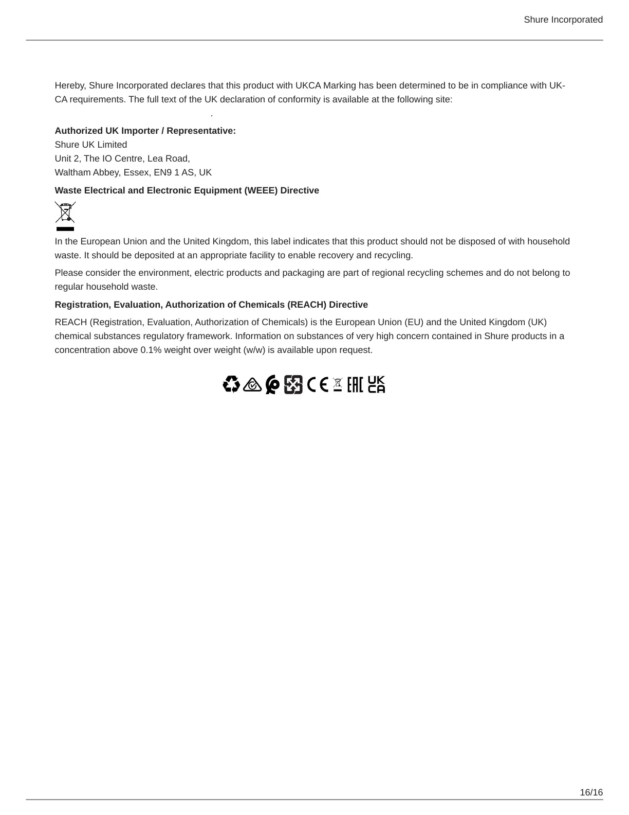 Hereby,ShureIncorporateddeclaresthatthisproductwithUKCAMarkinghasbeendeterminedtobeincompliancewithUK