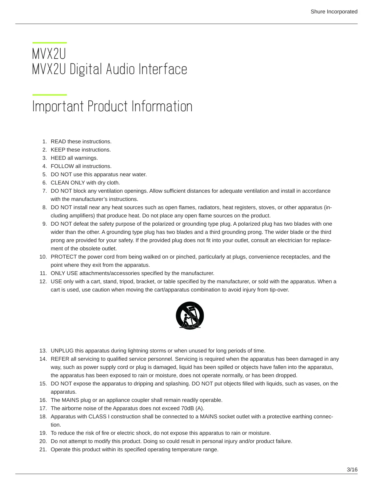 cart is used, use caution when moving the cart/apparatus combination to avoid injury from tip-over.