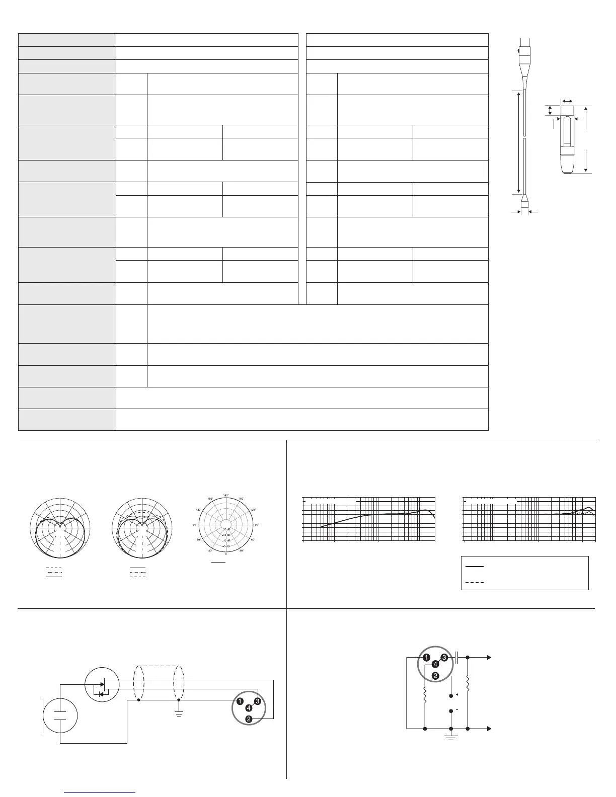 Polarité TQG : Une pression acoustique positive sur le diaphragme produit une tension positive sur la broche 3 par rap-