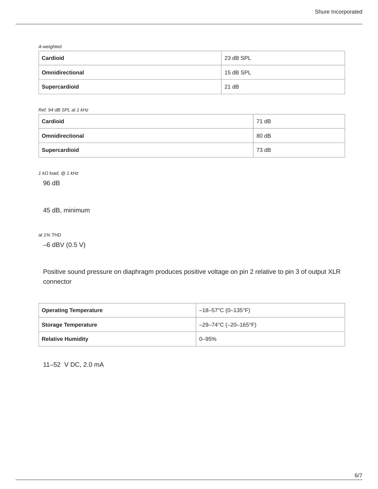 Ref. 94 dB SPL at 1 kHz