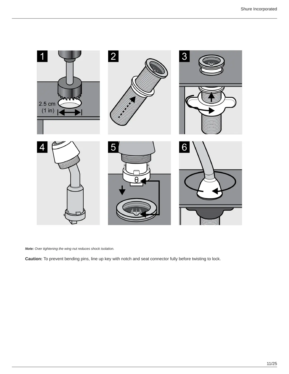 Note: Over tightening the wing nut reduces shock isolation.