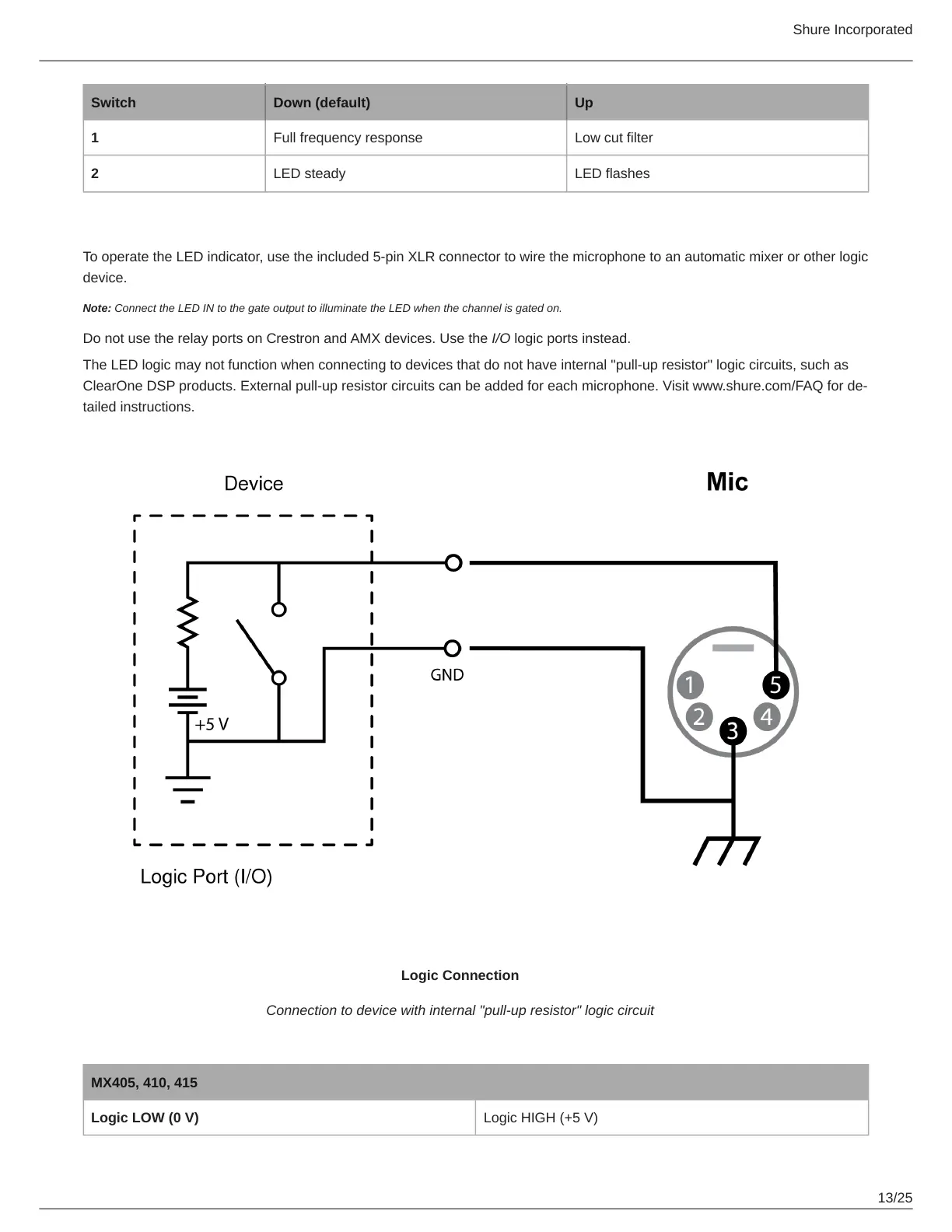 ClearOne DSP products. External pullup resistor circuits can be added for each microphone. Visit www.shure.com/FAQ for de