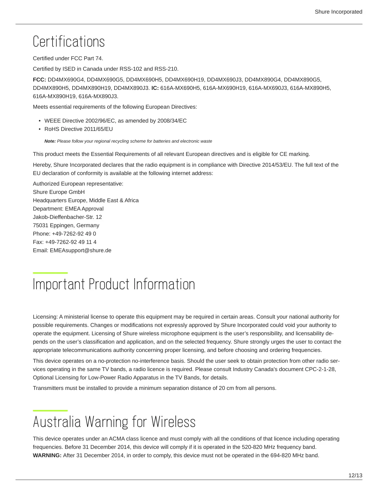 Email: EMEAsupport@shure.de