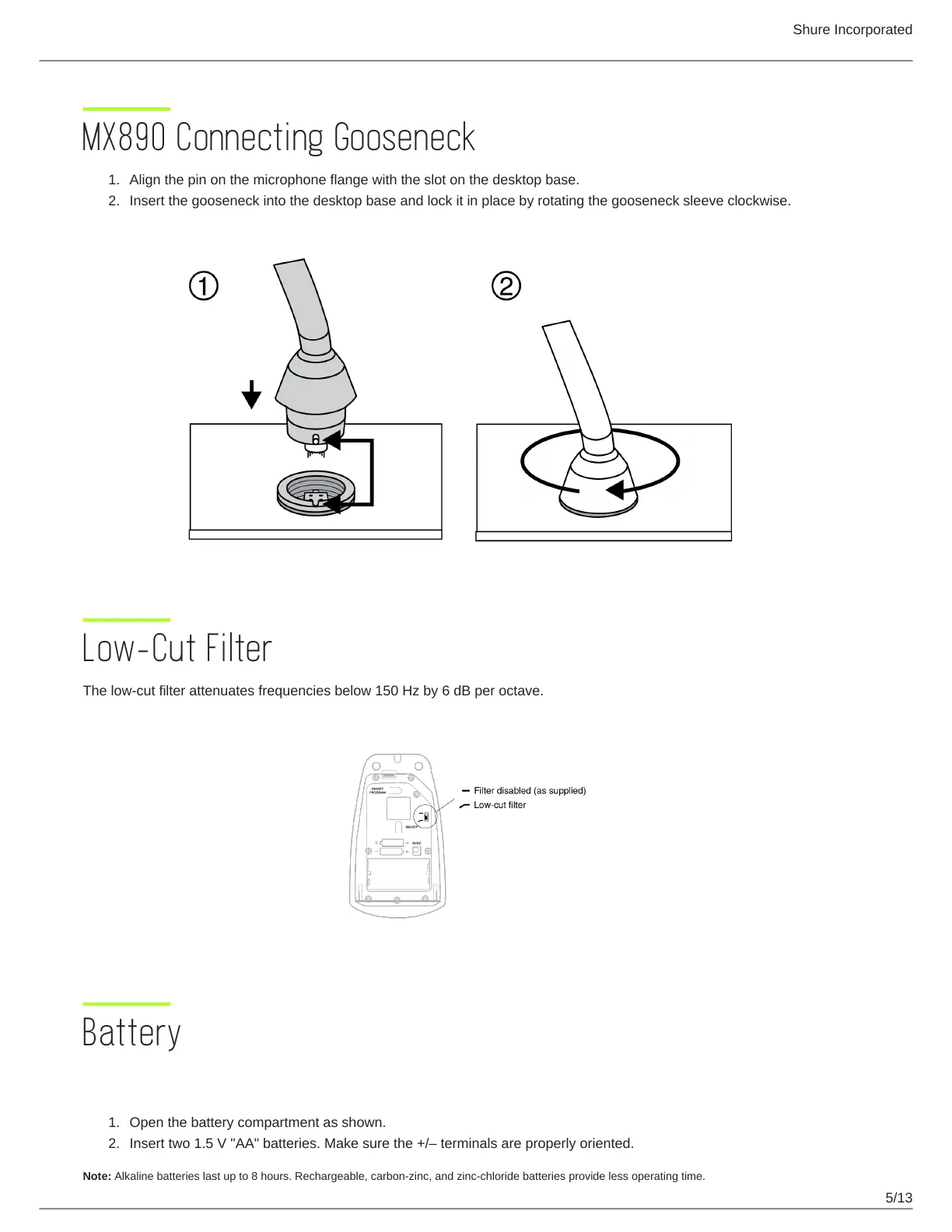 The low-cut filter attenuates frequencies below 150 Hz by 6 dB per octave.