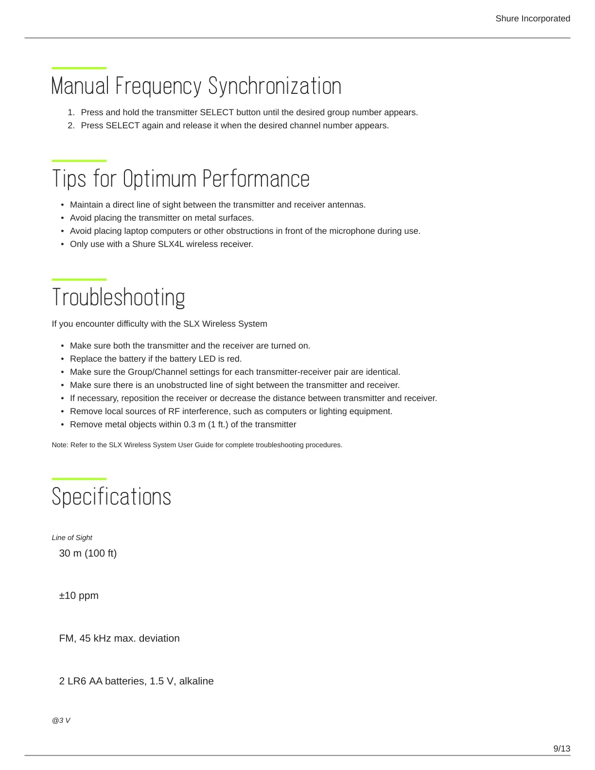 Note: Refer to the SLX Wireless System User Guide for complete troubleshooting procedures.