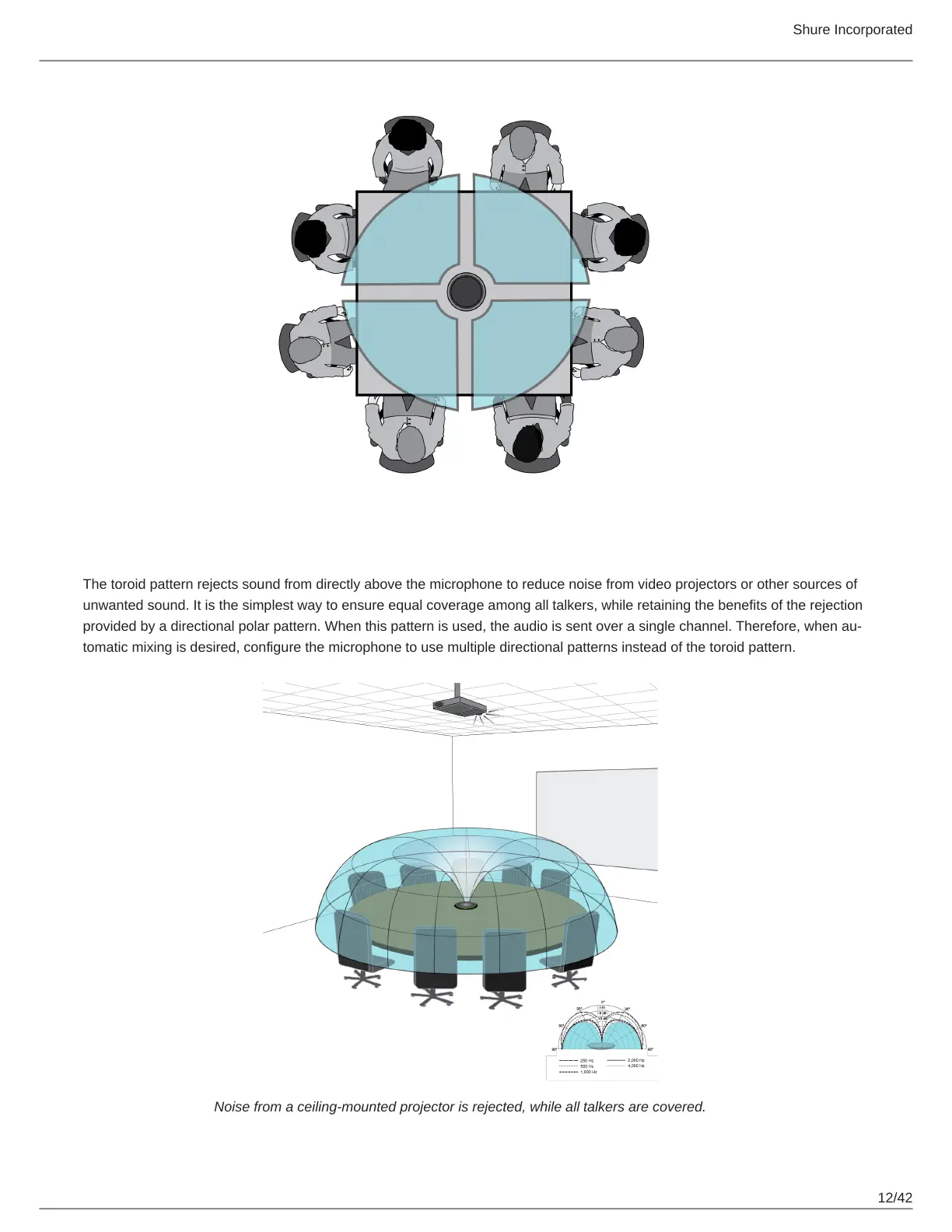 The toroid pattern rejects sound from directly above the microphone to reduce noise from video projectors or other sources of