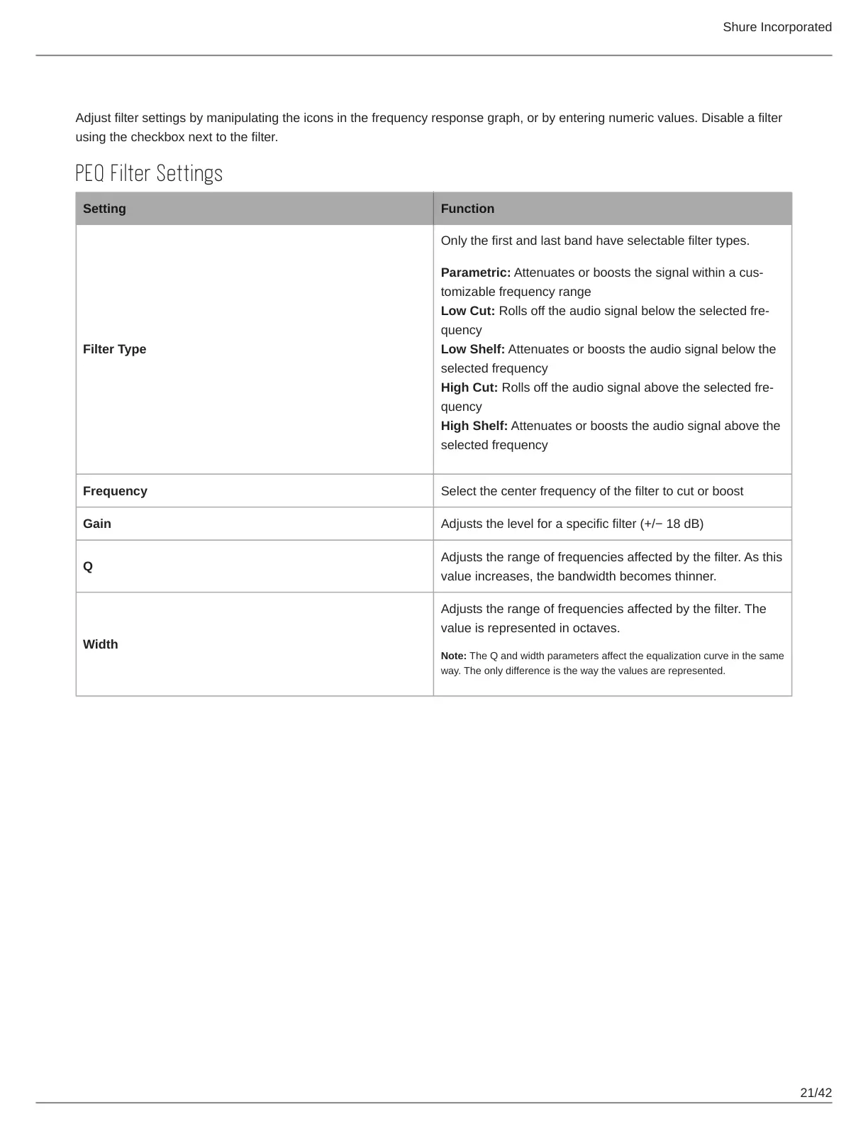 Gain Adjusts the level for a specific filter (+/− 18 dB)
