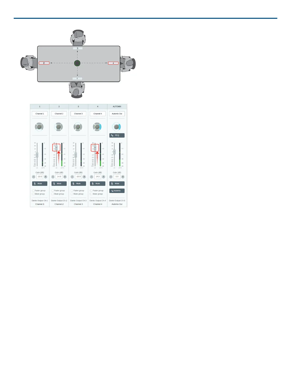 To adjust, go to Channels. These faders affect a channel's gain before it reaches the automixer and therefore af
