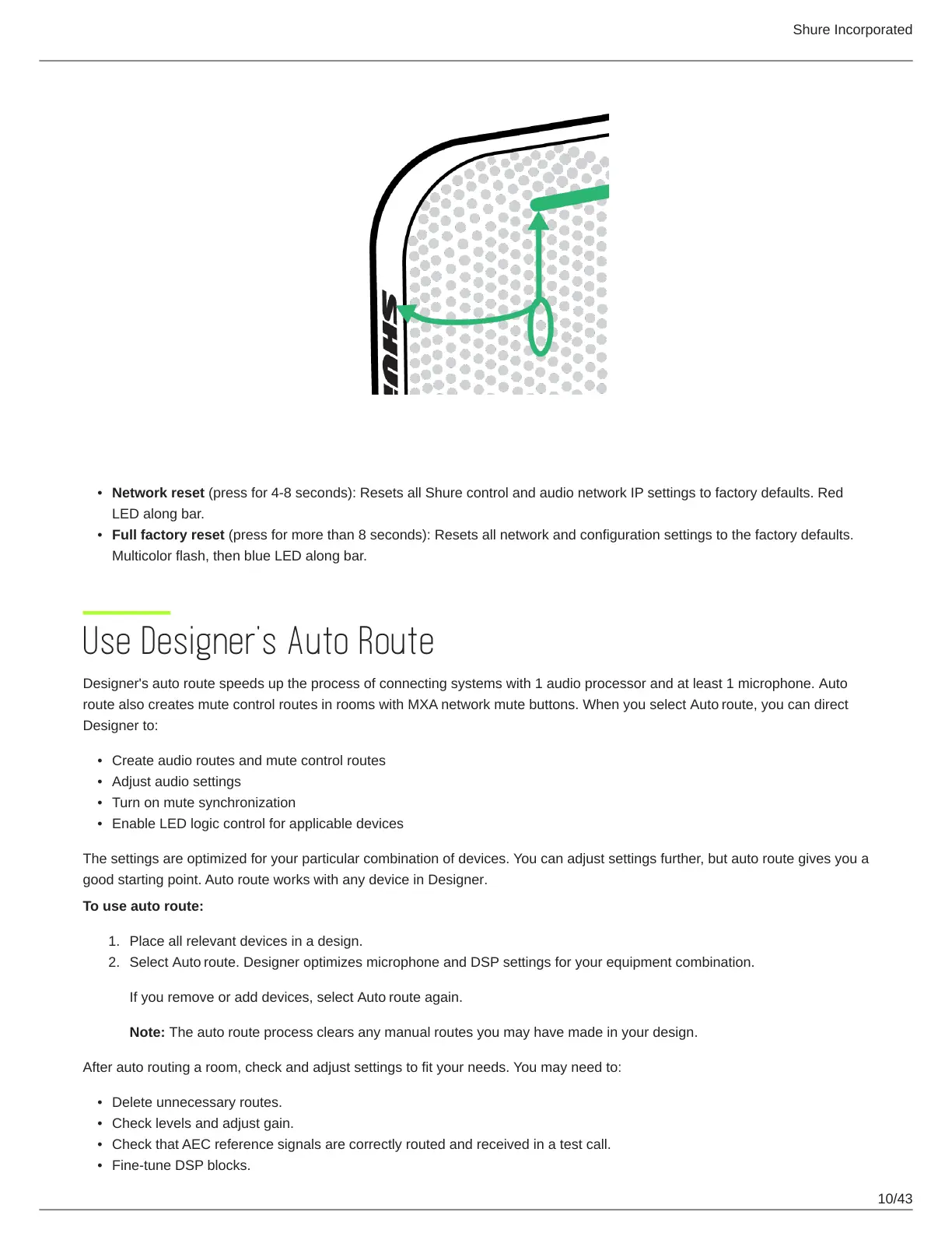 Select Auto route. Designer optimizes microphone and DSP settings for your equipment combination.