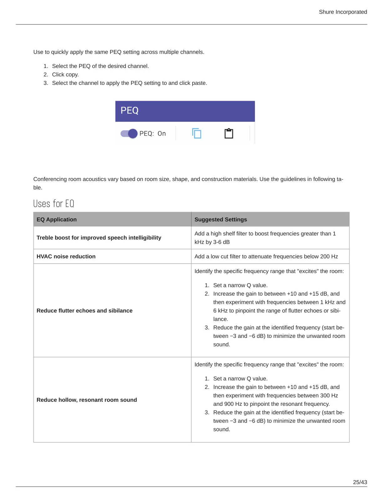Conferencing room acoustics vary based on room size, shape, and construction materials. Use the guidelines in following ta