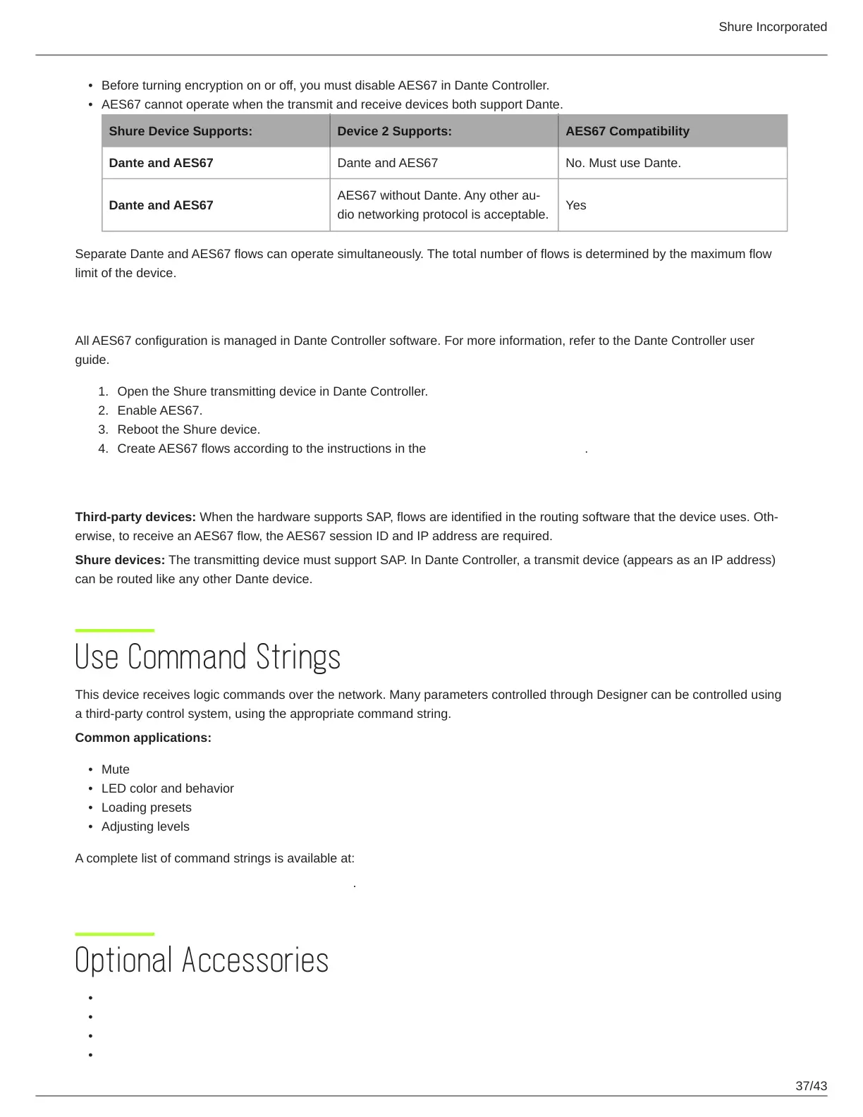 Shure Device Supports: Device 2 Supports: AES67 Compatibility