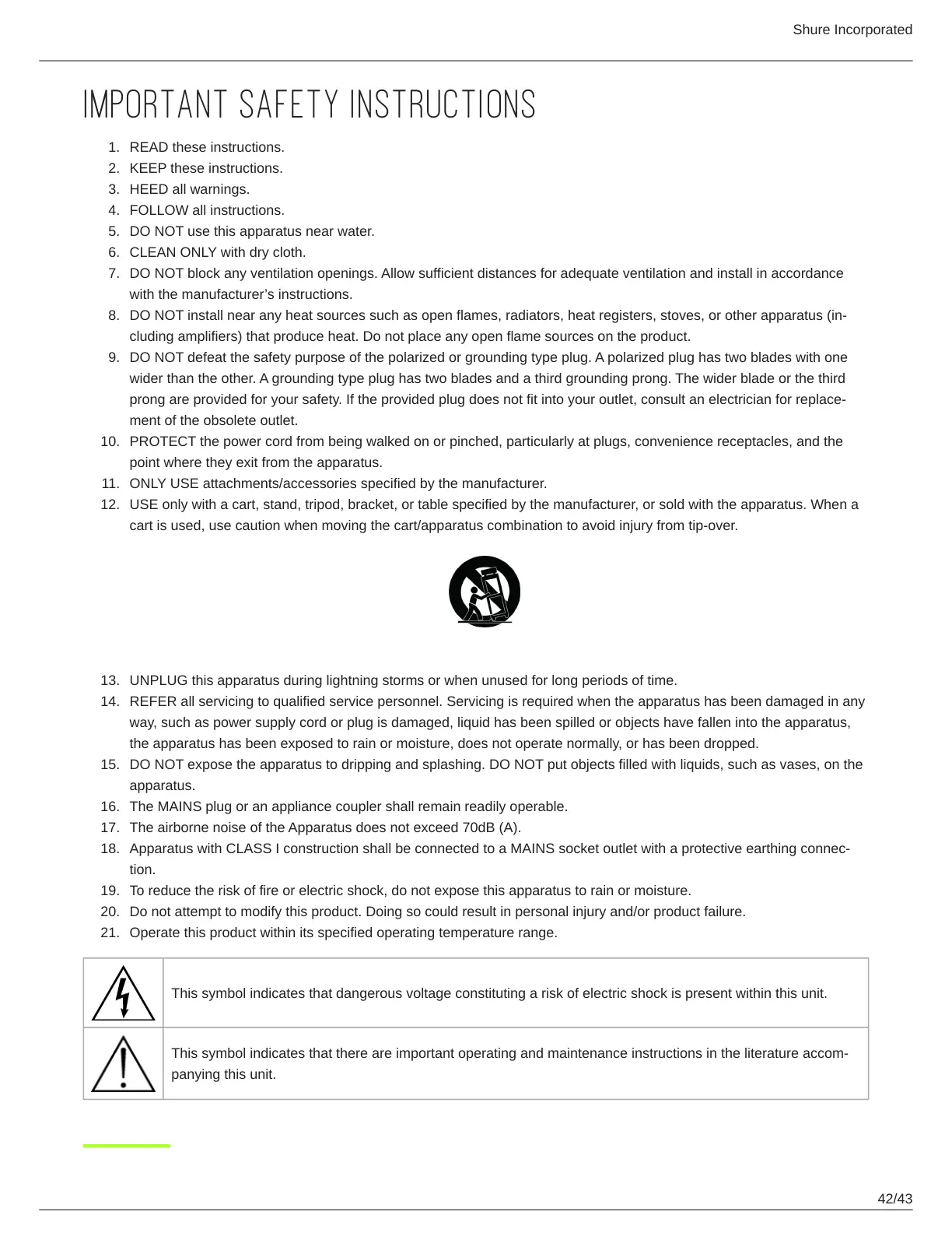 cart is used, use caution when moving the cart/apparatus combination to avoid injury from tip-over.