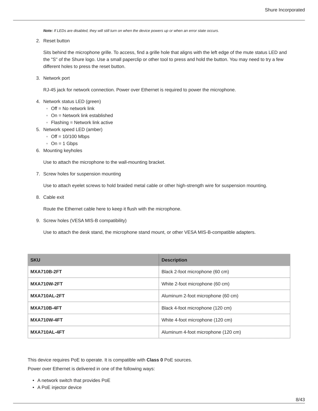 Note: If LEDs are disabled, they will still turn on when the device powers up or when an error state occurs.