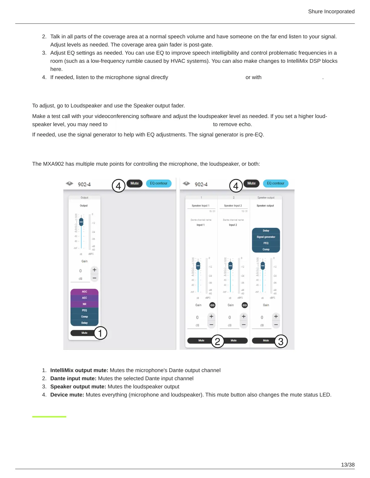 The MXA902 has multiple mute points for controlling the microphone, the loudspeaker, or both: