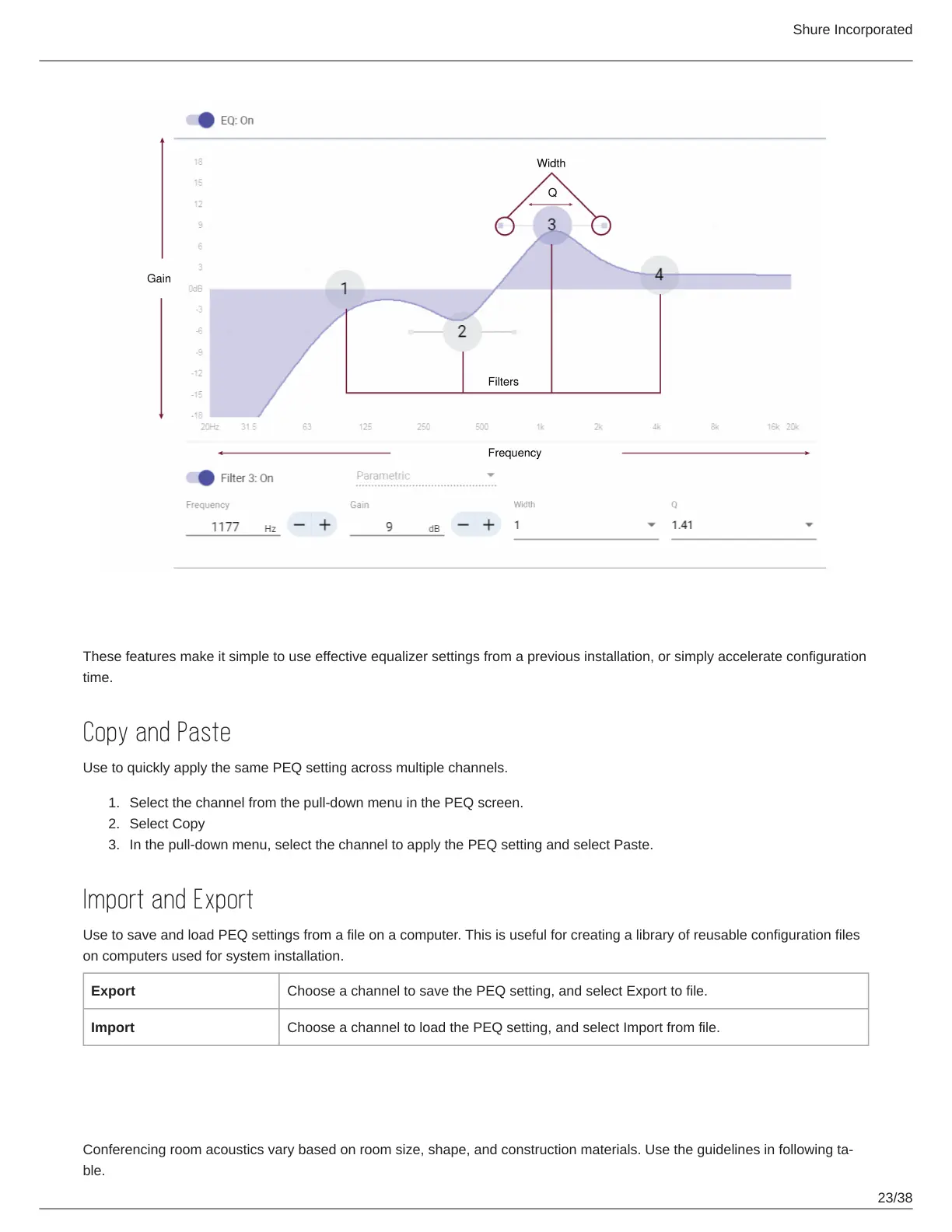 Conferencing room acoustics vary based on room size, shape, and construction materials. Use the guidelines in following ta