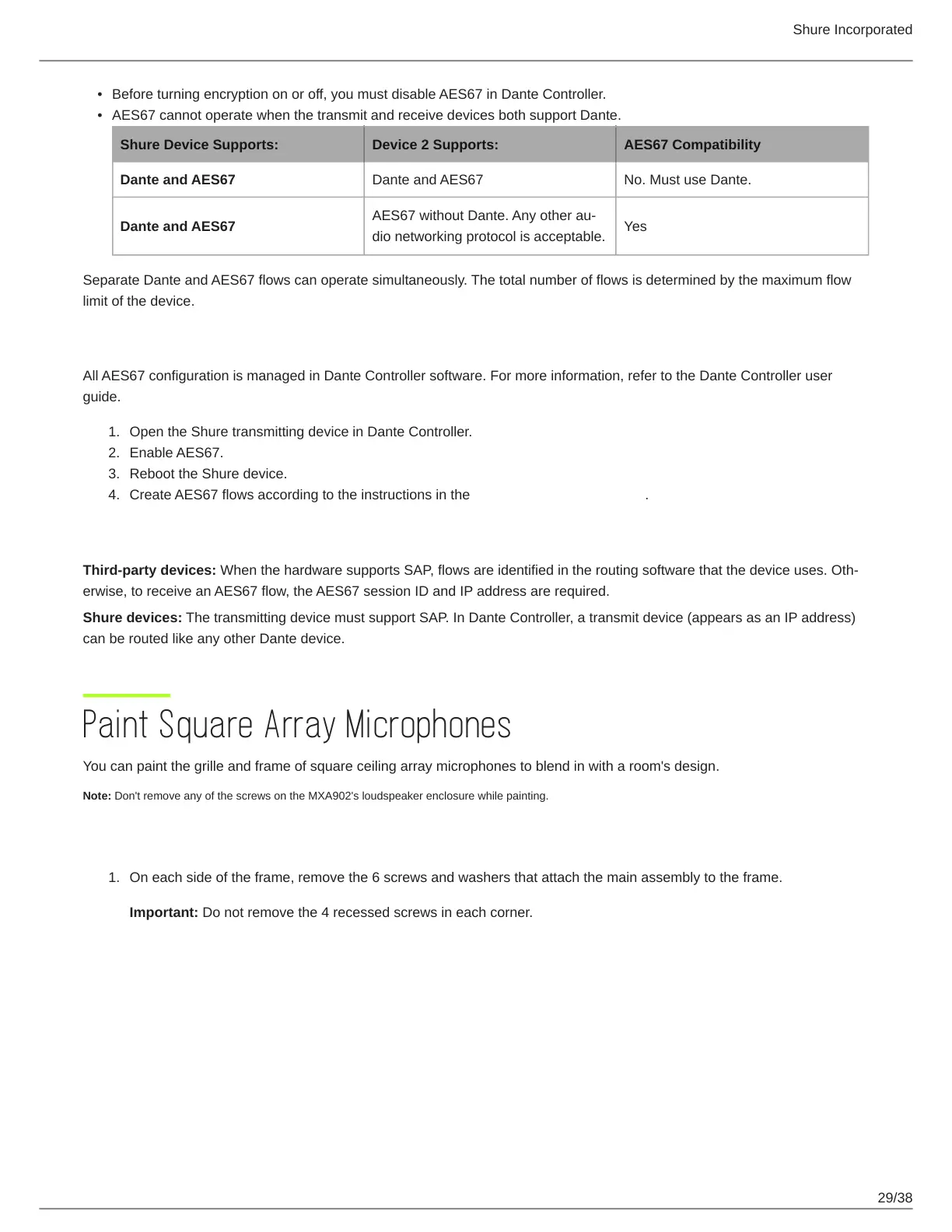 Shure Device Supports: Device 2 Supports: AES67 Compatibility