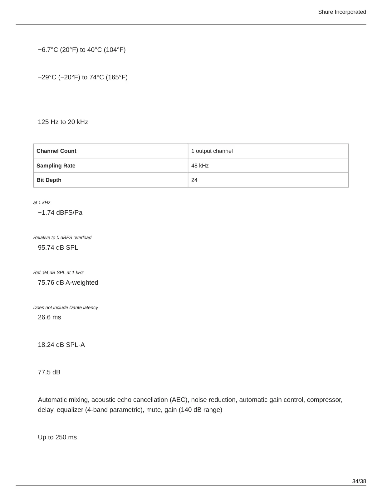 Automatic mixing, acoustic echo cancellation (AEC), noise reduction, automatic gain control, compressor,