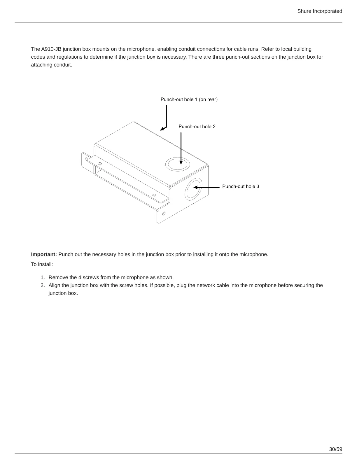 Important: Punch out the necessary holes in the junction box prior to installing it onto the microphone.