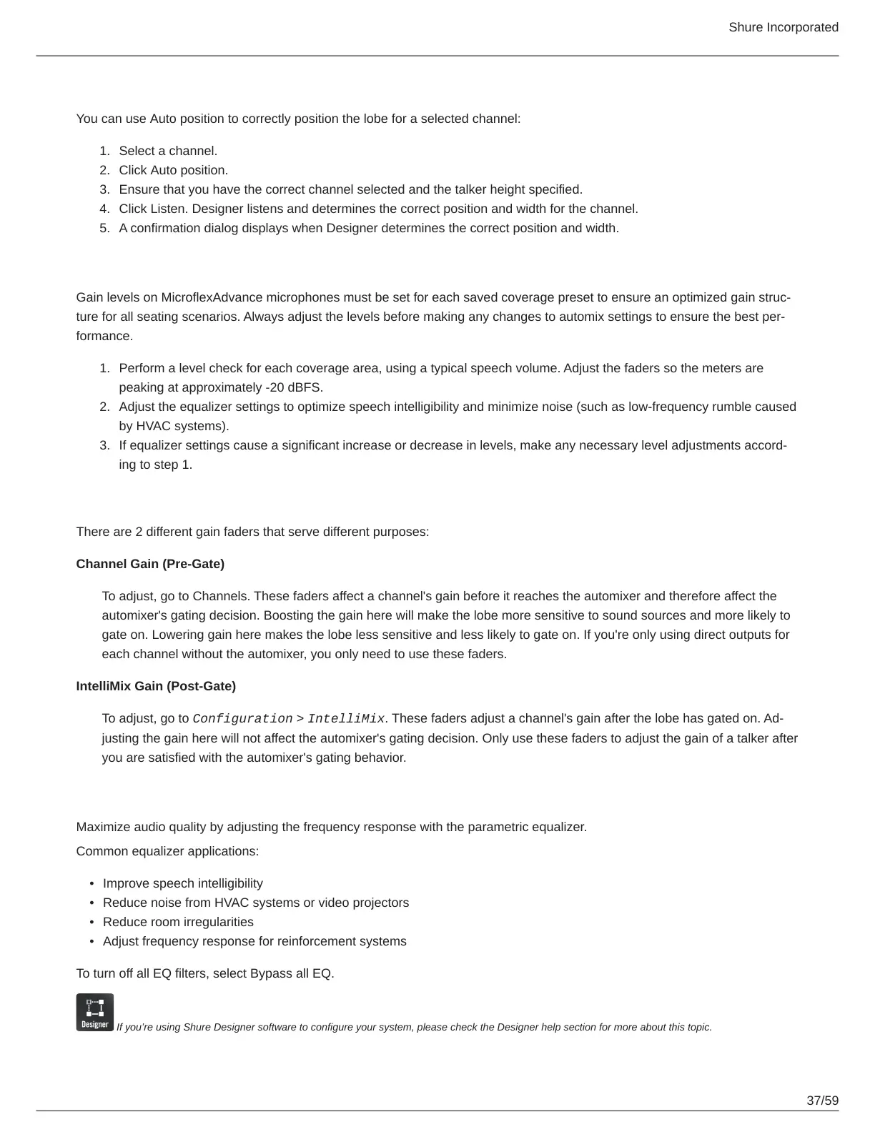 If you’re using Shure Designer software to configure your system, please check the Designer help section for more about this topic.