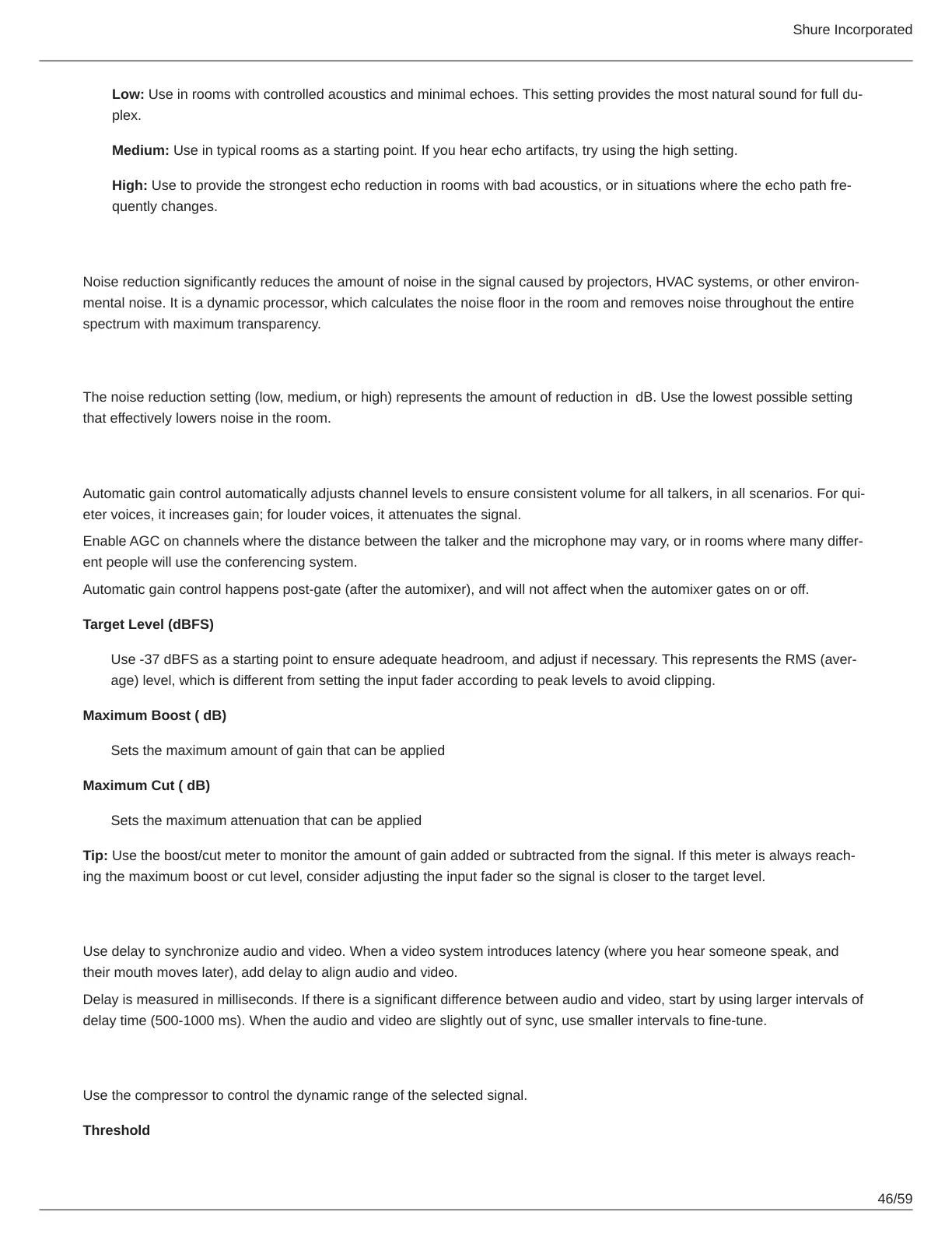 Medium: Use in typical rooms as a starting point. If you hear echo artifacts, try using the high setting.