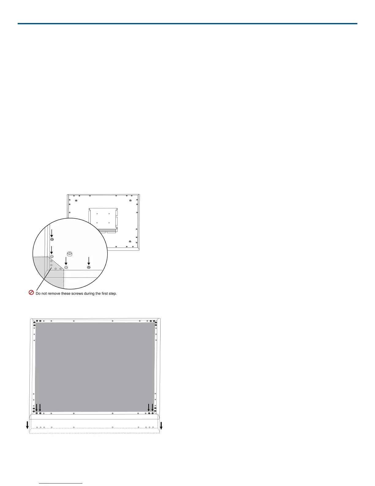 Important: Do not remove the screws that are farthest in the corner and recessed into the panel (see graphic).