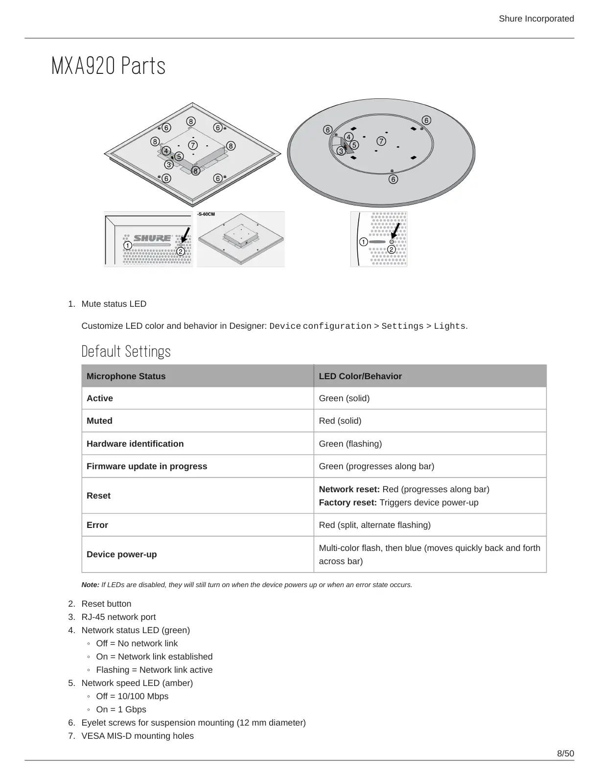 Customize LED color and behavior in Designer: Device configuration > Settings > Lights.