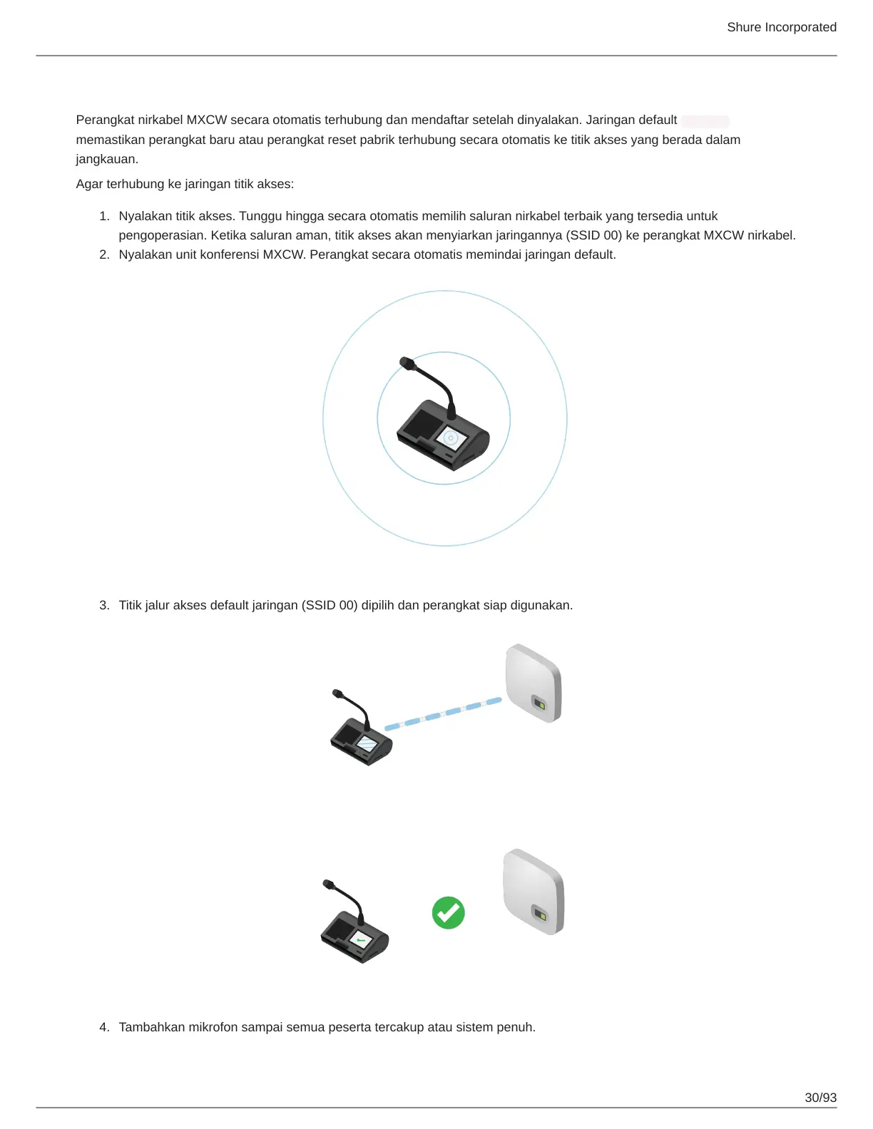 pengoperasian. Ketika saluran aman, titik akses akan menyiarkan jaringannya (SSID 00) ke perangkat MXCW nirkabel.
