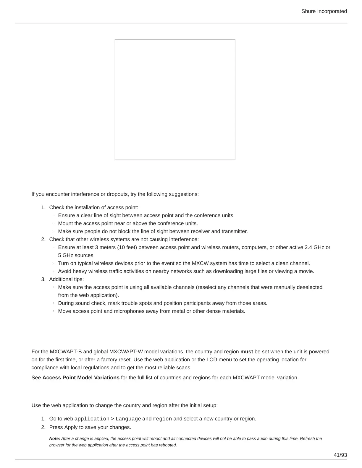 See Access Point Model Variations for the full list of countries and regions for each MXCWAPT model variation.
