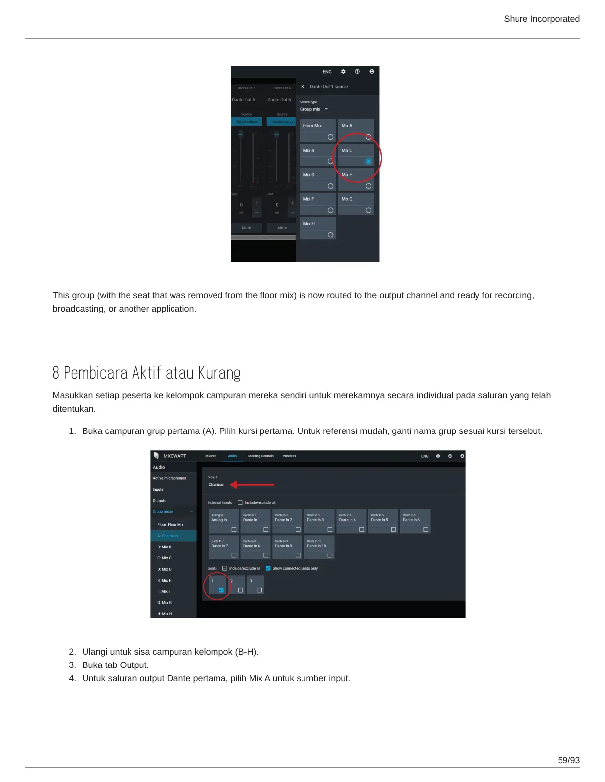 Untuk saluran output Dante pertama, pilih Mix A untuk sumber input.