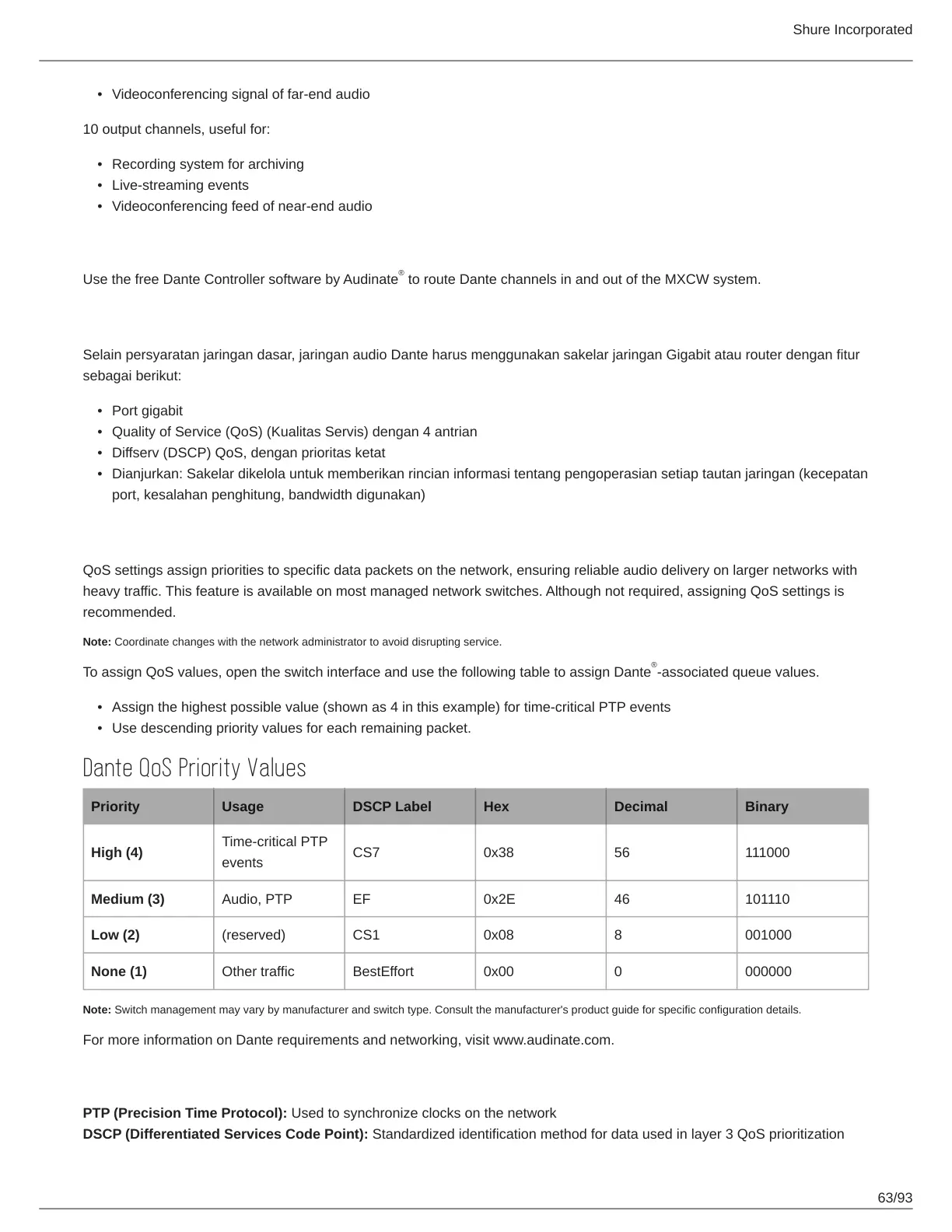 For more information on Dante requirements and networking, visit www.audinate.com.
