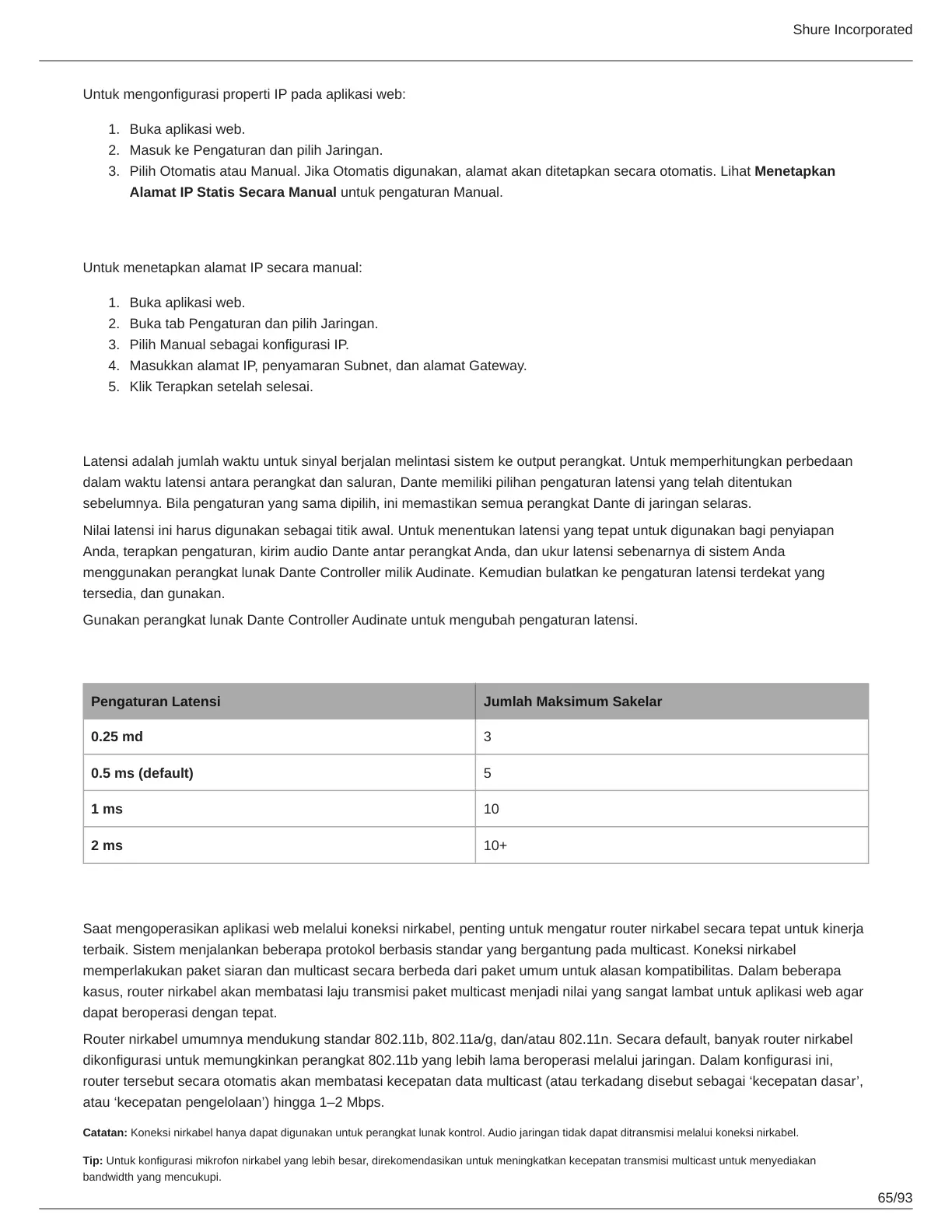 Tip: Untuk konfigurasi mikrofon nirkabel yang lebih besar, direkomendasikan untuk meningkatkan kecepatan transmisi multicast untuk menyediakan