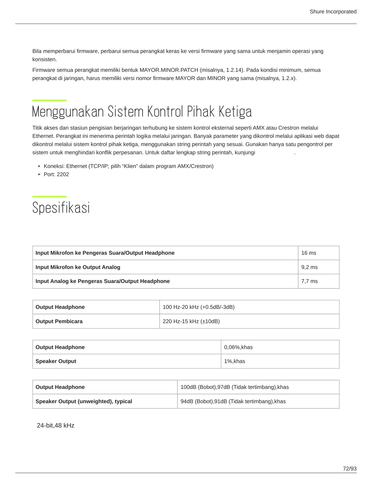 sistem untuk menghindari konflik perpesanan. Untuk daftar lengkap string perintah, kunjungipubs.shure.com.